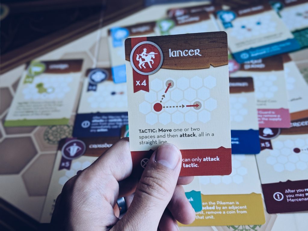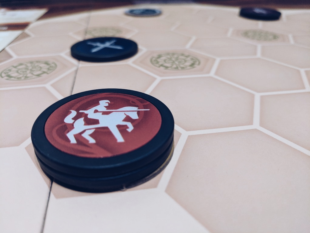 In fact, pretty much all of the components are really high quality. The game board is printed on sturdy material, and the unit and royal coins have a surprising amount of heft to them. I will say that the cardboard control markers, while good quality, feel subpar after handling the more premium feeling coins. I would have preferred the control markers be coins of a different color. This would make them feel better and be more visible with units on top of them. As it is, it can be easy to forget that you even have a control marker under a unit coin.